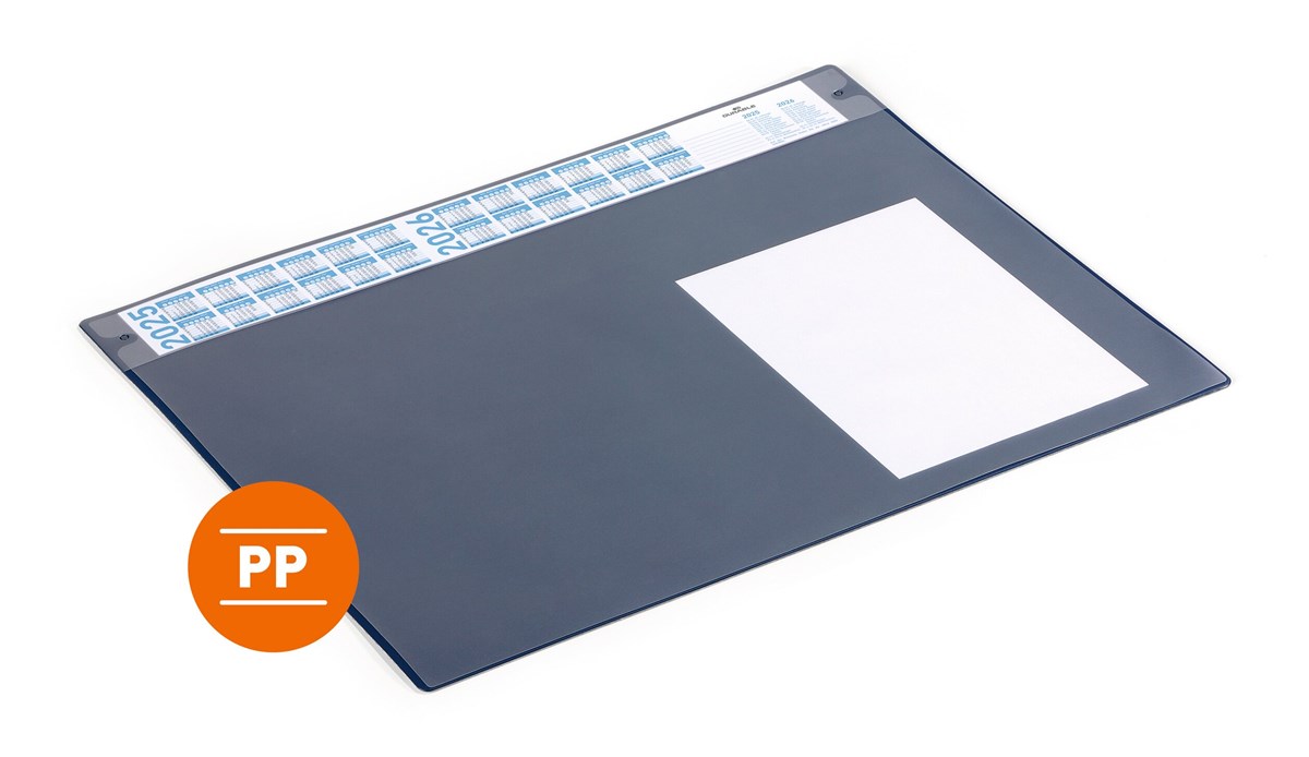 Använd skrivbordsunderlägg för att skydda bordet mot slitage. Detta underlägg har transparent, reflexfri och borttagbar klaff som det går att förvara noteringar, anteckningar och lappar under. Dessutom en smal översiktskalender för 4 år.