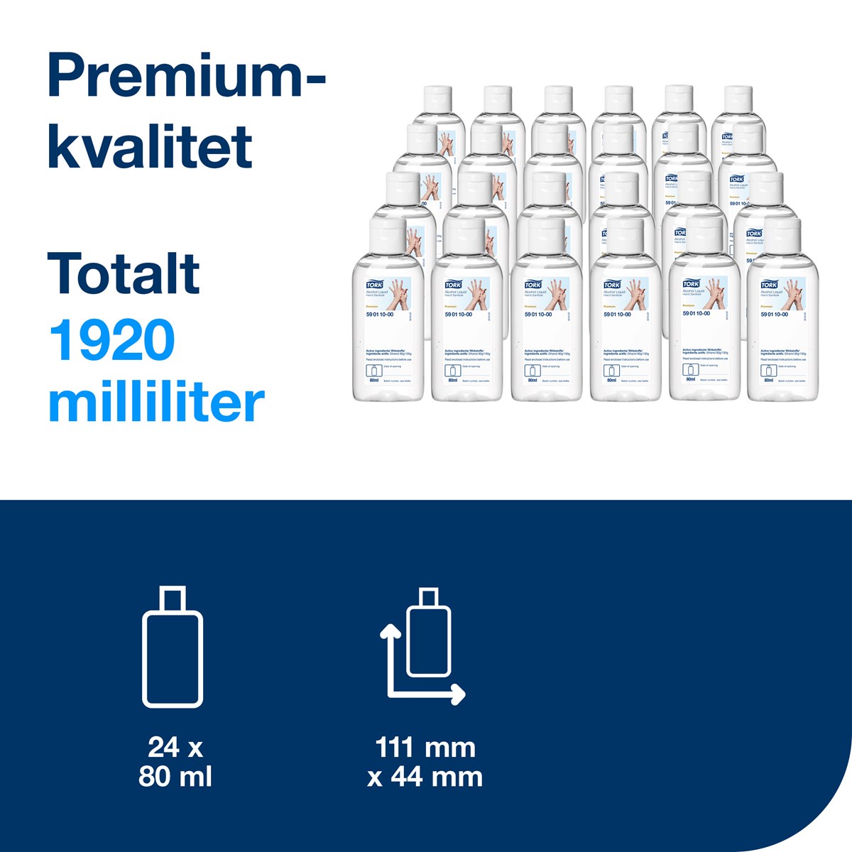 Med 80% (v/v) denaturerad alkohol är effektiv och idealisk för handdesinficering. Effektiv mot en mängd problematiska organismer – uppfyller kraven i EN1500, EN12791 och EN14476 - alla höljeförsedda virus, rotavirus och norovirus. 80 ml. 24 st/förp.