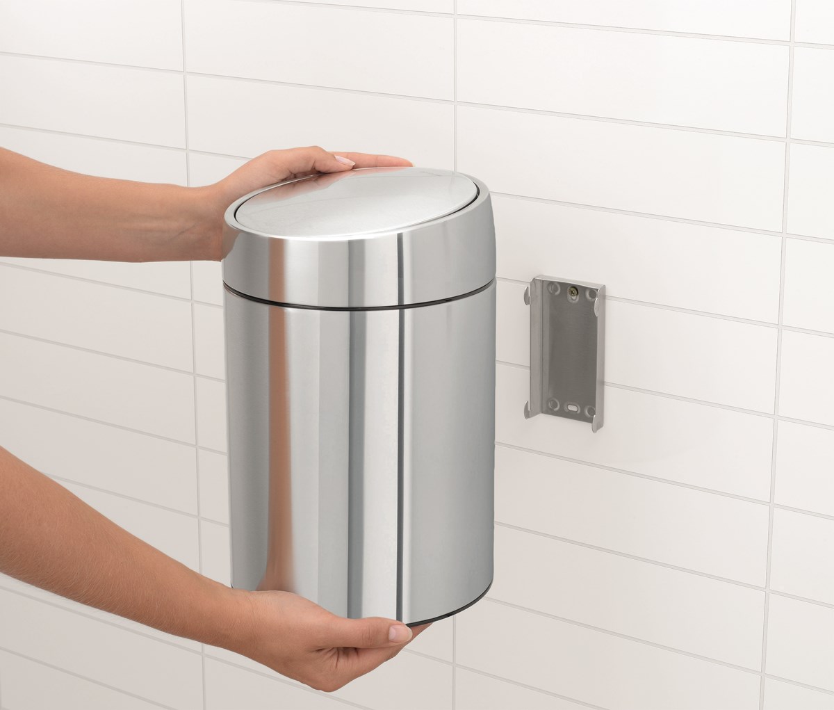 Denna 5 liters Slide Bin från Brabantia är din perfekta badrumskompis. Locket på den här snygga och kompakta soptunnan glider inåt, uppåt och bakåt, vilket gör att man inte rör vid innehållet. Den stängs diskret och automatiskt. Naturligtvis är det väldigt enkelt att tömma och rengöra och den levereras med en urtagbar plastinnerhink och avtagbar lockenhet. Ställ den på golvet eller häng den på väggen, denna Slide Bin är vid din sida.