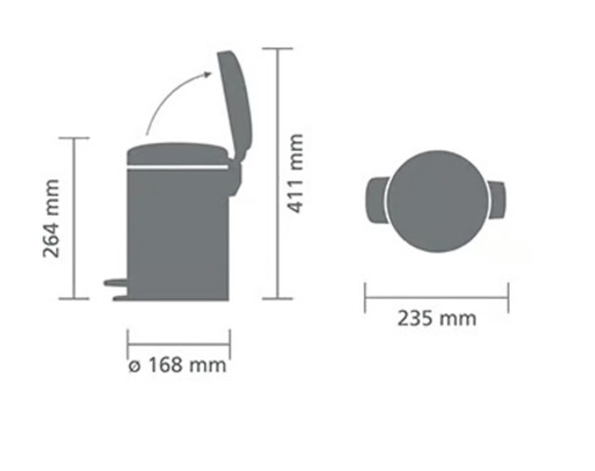 Lägg till lite stil med den söta Pedalhinken NewIcon 3 liter från Brabantia. Tidlös design med ett mjukstängande lock som förhindrar dålig lukt. Och naturligtvis är denna extra lilla NewIcon pedalhink hygienisk, lätt att öppna och hålla ren också. Perfekt för badrummet, toaletten eller något annat rum där en underbar liten hink kan användas. Tillverkad 47% återvunnet material, 96% återvinningsbar efter användning