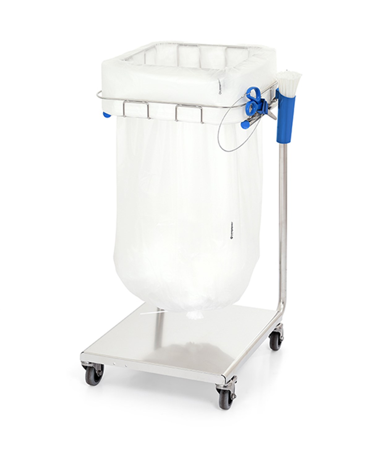 Ett mer roboust golvställning för den lite tuffare miljön. Hygienisk hantering då byte och förslutning sker från säckens utsida – ingen kontakt med avfallet. Låsbara hjul. Mått H x B x D: 955 x 495 x 555 mm. Inkastöppning: 320 x 280 mm. Laddas med säckkassett Longopac Midi.