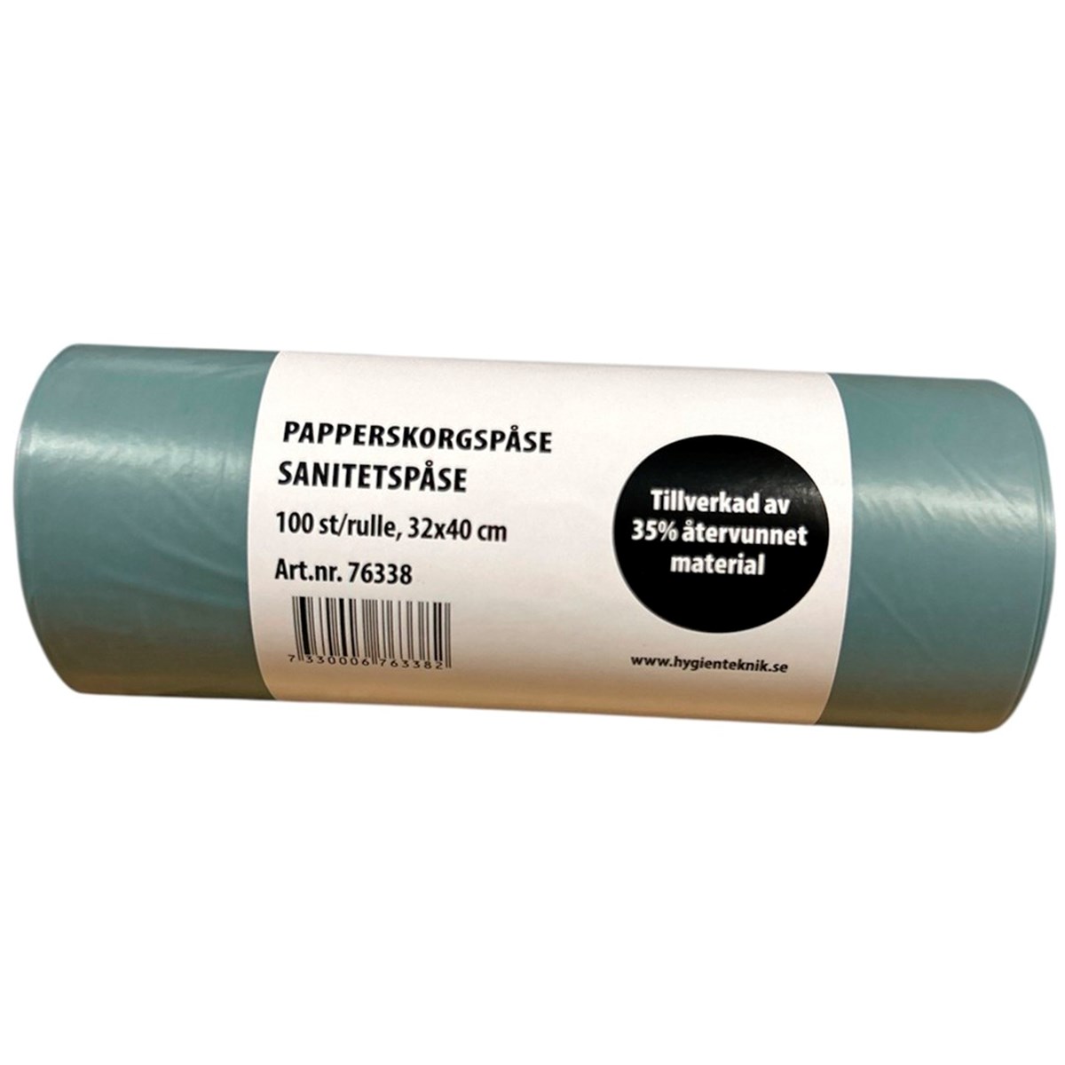 Sanitetspåse i plast för bindor och liknande. Tillverkad av 35% återvunnet material.