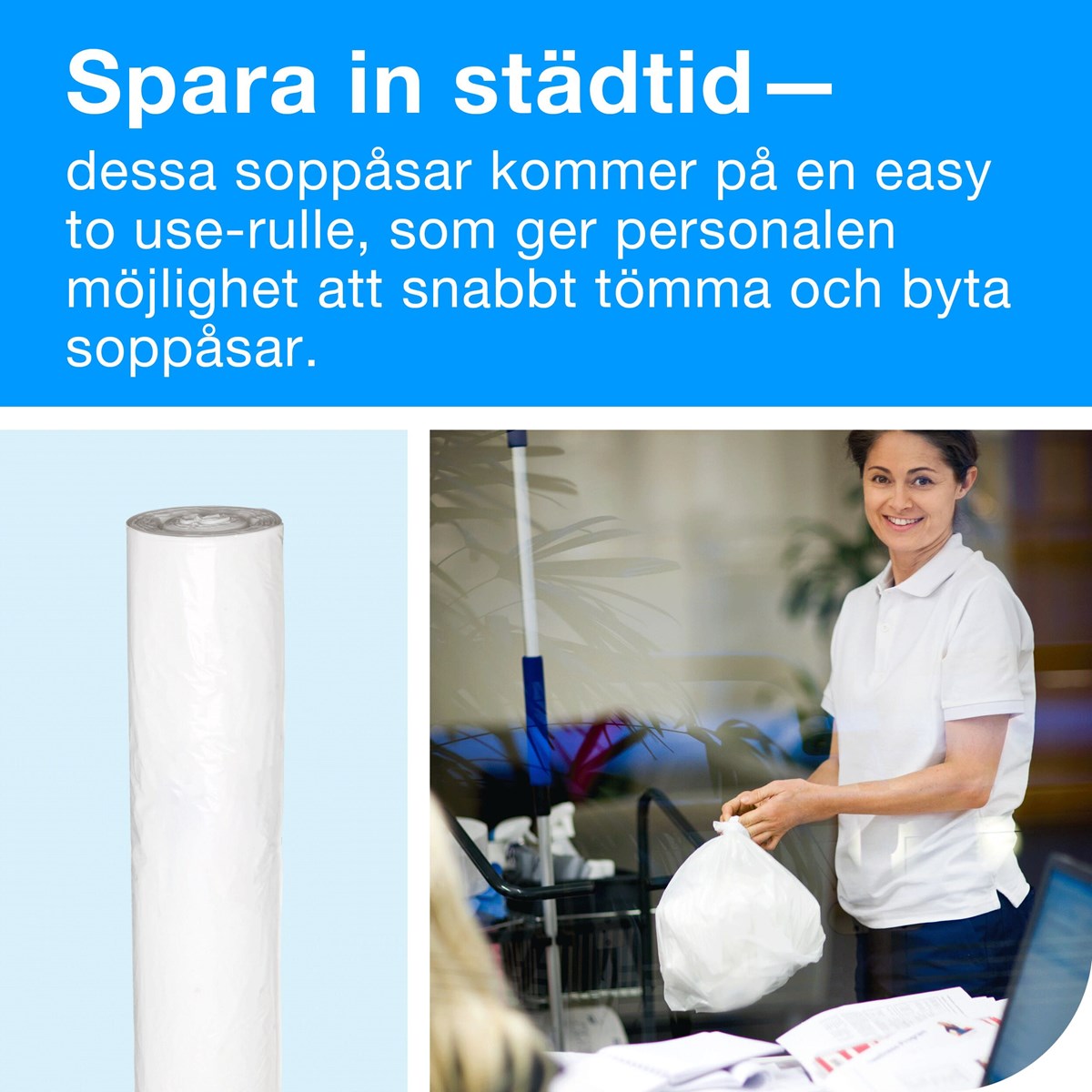Framtagna för att det ska vara enkelt att tömma och fylla på papperskorgar Högkvalitativ, tjock kvalitet för utmärkt prestanda Levereras som rullar för enkel användning