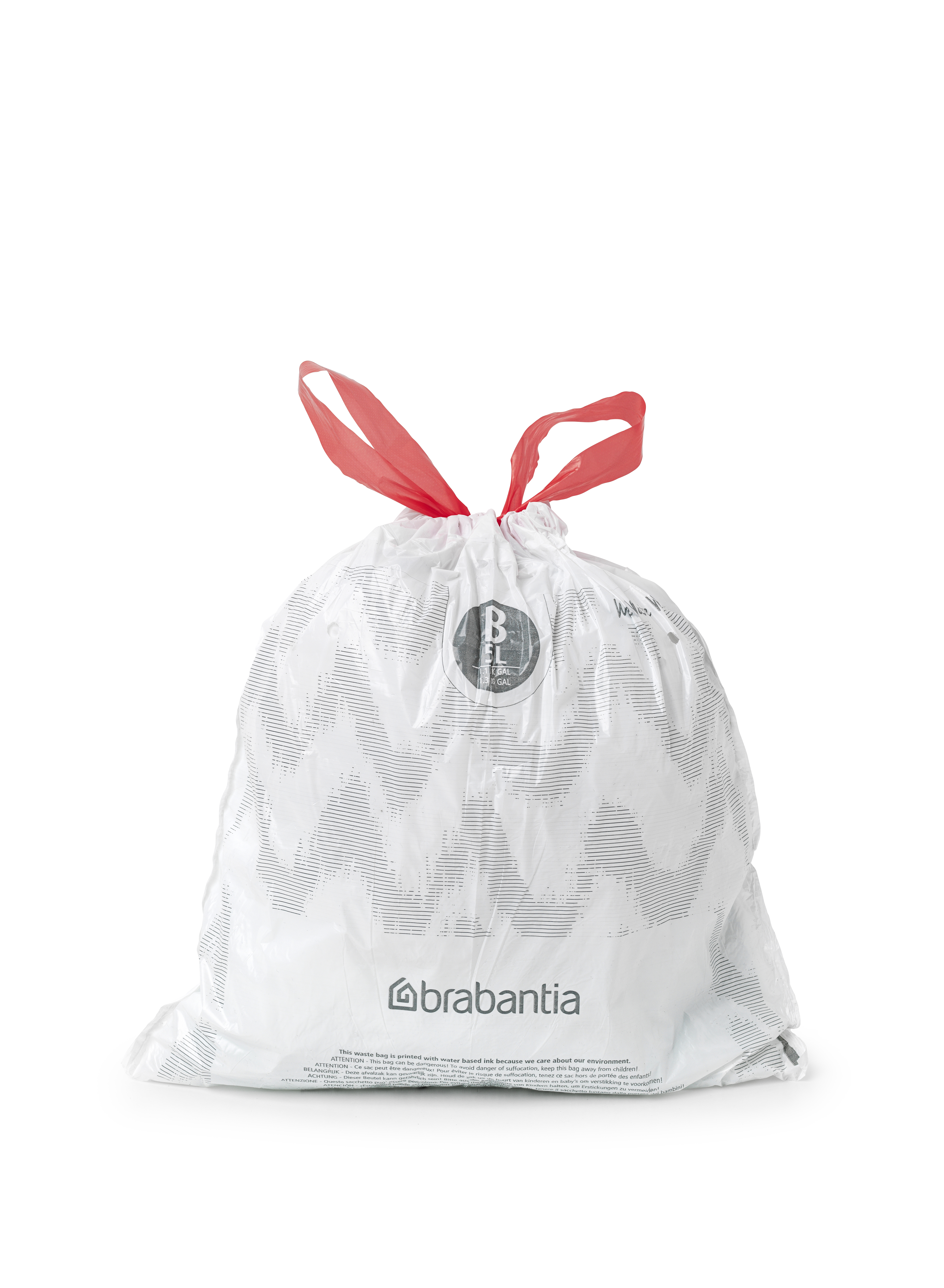 Perfekt passform – skräddarsydd för Brabantias avfallshinkar. Varje avfallsbehållare från Brabantia har en kodning i locket. Matcha kodningen i locket med påsar av samma kod så passar påsen perfekt. Tack vare ett praktiskt knytband som dessutom fungerar som bärsnöre går det snabbt och enkelt att byta påsen. Kanten blir i princip osynlig och sitter alltid säkert på plats i din avfallshink. 40 påsar/förp.