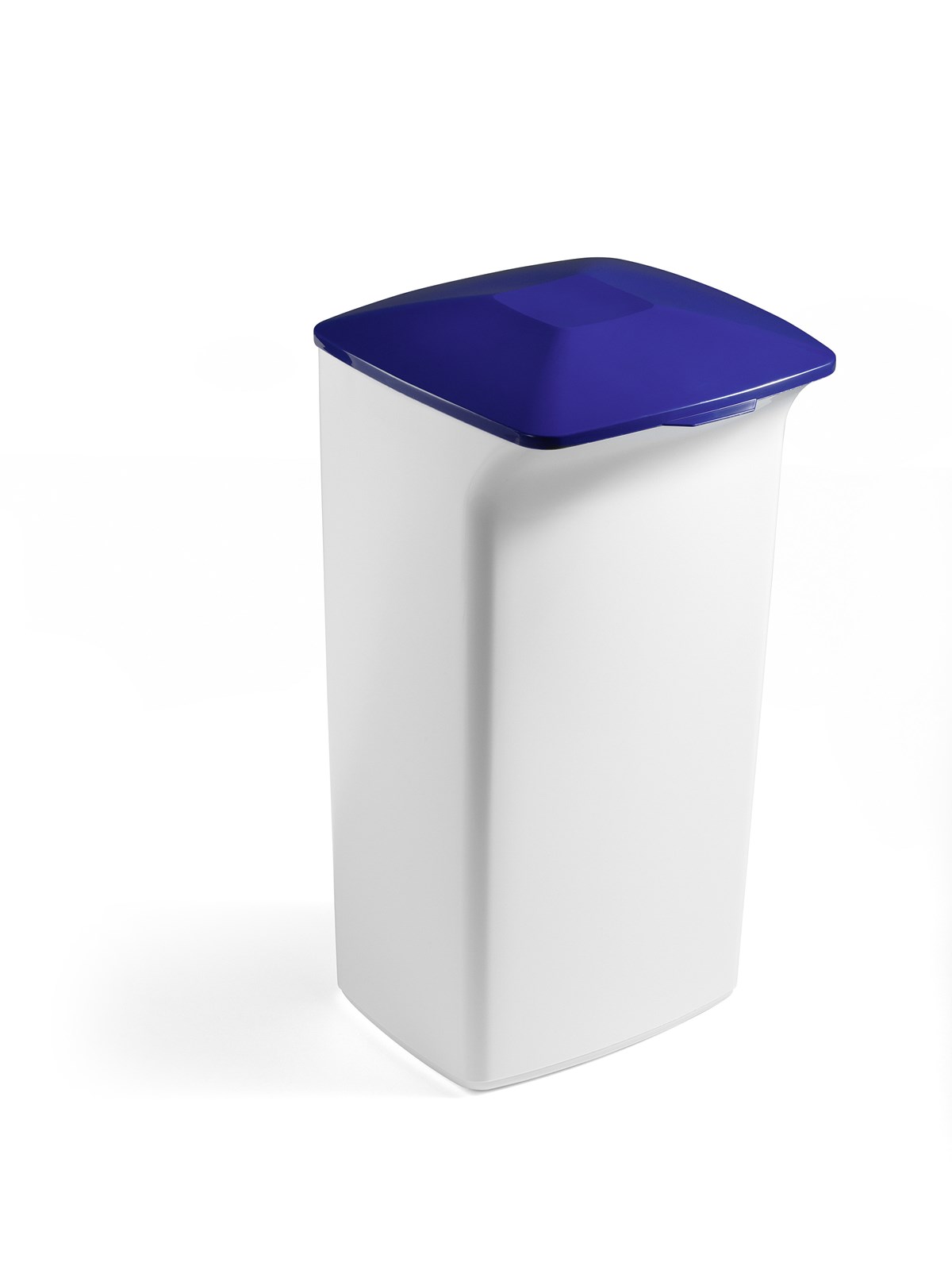 Komplettera tunnan Durabin Kvadrat 40-liters med ett lock. Locket sitter fast i bakkant så att det går att fälla upp med en hand och inte behöver lyftas av från tunnan. Visuell överblick och orientering med hjälp av olika färger på locket vid t.ex. källsortering.