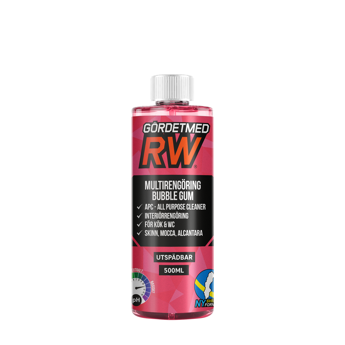 Multirengöring - Superkoncentrat är en effektiv och mångsidig rengöringslösning som kan användas koncentrerat eller utspätt. Med en maximal utspädning på 10% rengöring med 90% vatten och en rekommenderad spädning av 20-30%, passar produkten för rengöring av alla typer av ytor, inklusive bilens interiör och motorutrymmen. Skonsam mot material som tyg, plast och läder, lämnar den inga rester efter användning. Denna rengöring är perfekt för cab-rengöring, vinyltak, mopeder och motorcyklar. Sprutmunstycke ingår ej.