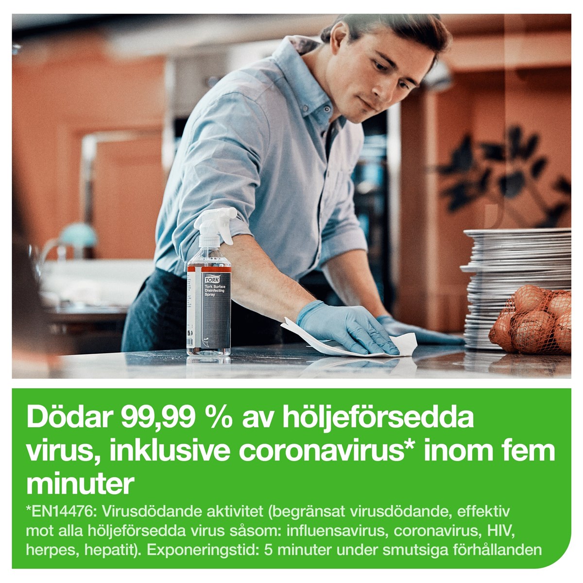 Ett desinficeringsmedel som är redo att användas och är effektivt mot en mängd bakterier, virus och jäster, inklusive coronavirus. Det är en biologiskt nedbrytbar formula och innehåller en 100 % växtbaserad aktiv ingrediens (mjölksyra). Den ytdesinficerande sprayen är säker för användning på ytor som kommer i kontakt med livsmedel. Alkoholfri.