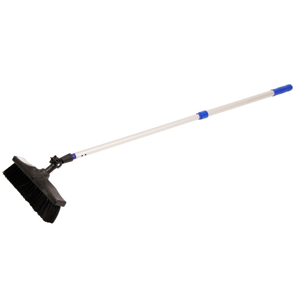 Professionell snöborste med teleskopskaft (79-130 cm). Med den 30 cm breda borsten, reglerbar vinkel och ett teleskopskaft kan du anpassa snöborsten efter behov. Fungerar utmärkt oavsett om du har en mindre bil eller en större transportbil. Du kan arbeta med tvåhandsfattning och du undviker att få snö på dig.