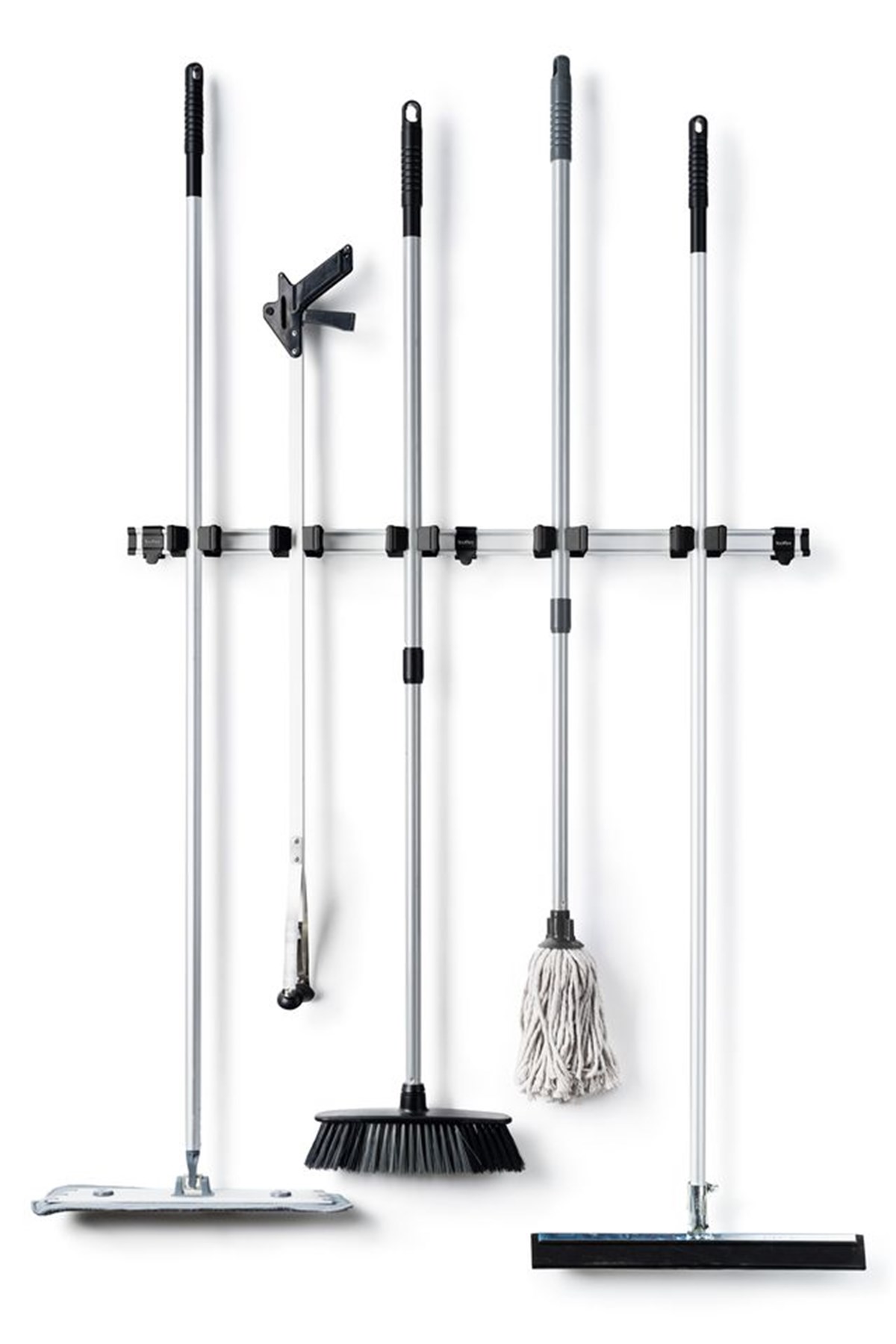 Skena med 5 hållare för redskap med Ø 15-35 mm. Monteras på vägg med medföljande väggfästen samt skruv och plugg. Längd: 94 cm.