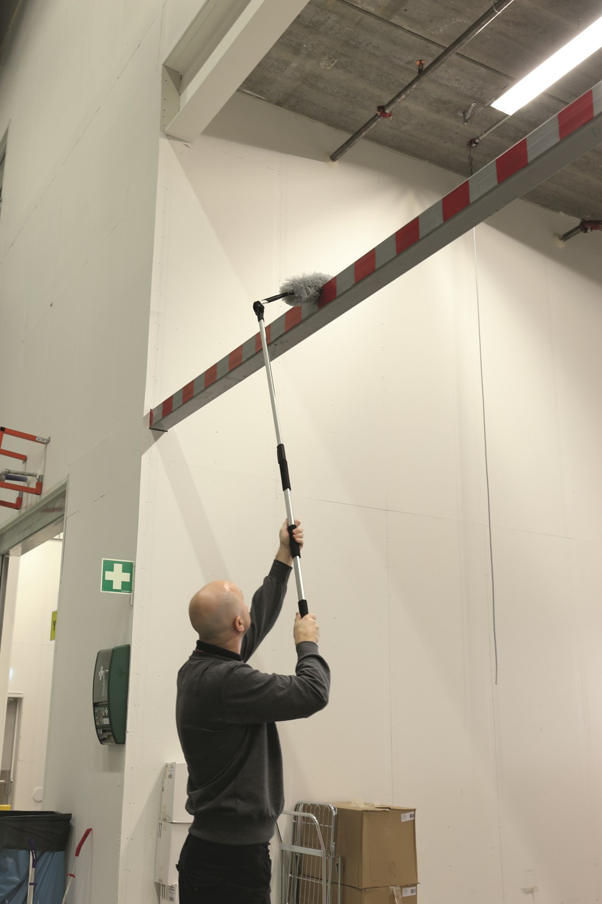 Justerbar, grå dammvippa med teleskophandtag. Mikofibertrådar som effektivt drar till sig damm.Längd: 139–206 cm.