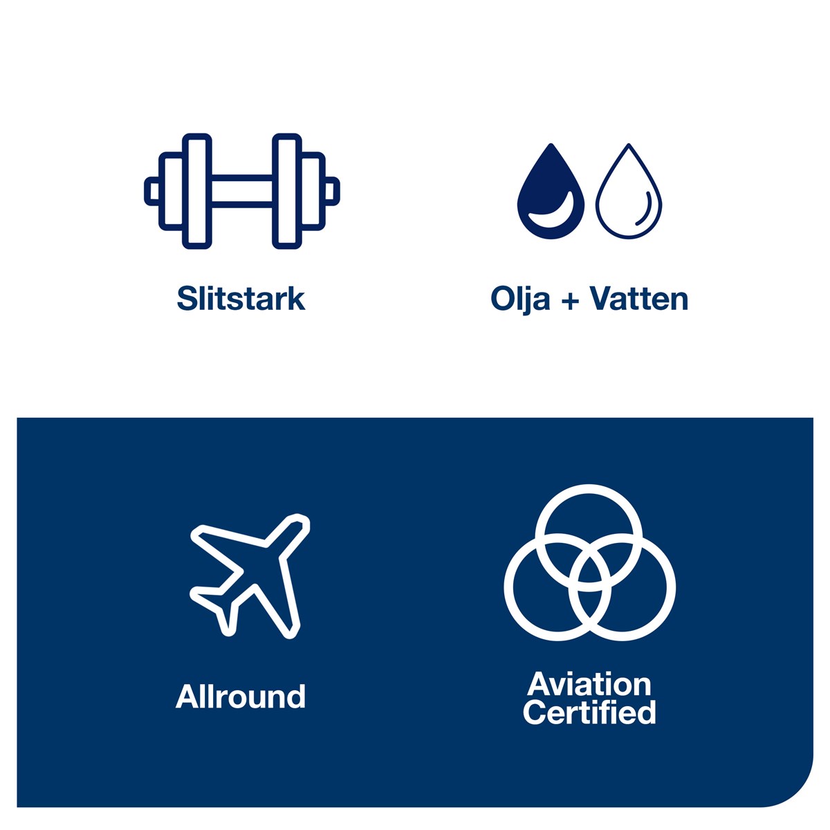 Kraftig och slitstark för grov rengöring Absorberar olja, fett och vätskor Extra stora ark exelCLEAN® sänker förbrukningen av lösningsmedel med upp till 41 % Bärbar Handy Box för ökad effektivitet
