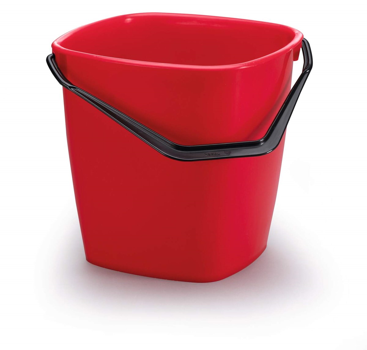Stabil, kvadratisk hink av polypropylenplast. Greppvänligt handtag. Rymmer 14 liter.