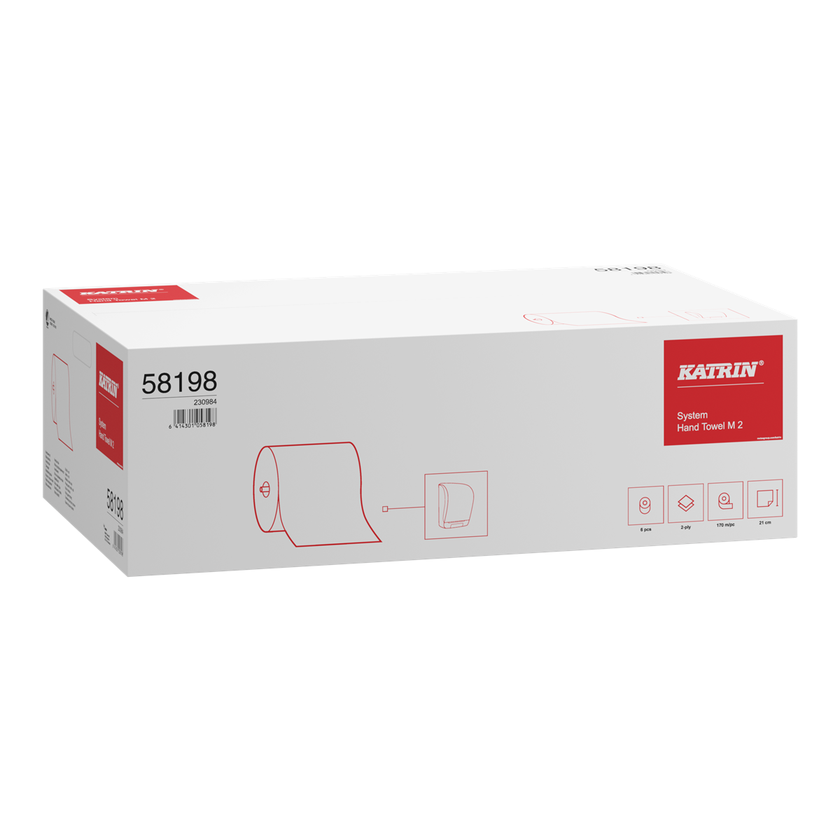 Handtorkpapper med bra egenskaper när det gäller styrka och absorption. Lämplig för miljöer med medelhög till hög förbrukning. Mycket papper på rullen - 772 ark/rulle. Fiberråvara: Återvunna fiber och nyfiber. Andelen styrs av produktkraven och tillgång och kvalitet för optimal användning av råvaran. 2-lagers, vit. Passar till: Katrin System Handduksdispenser.
