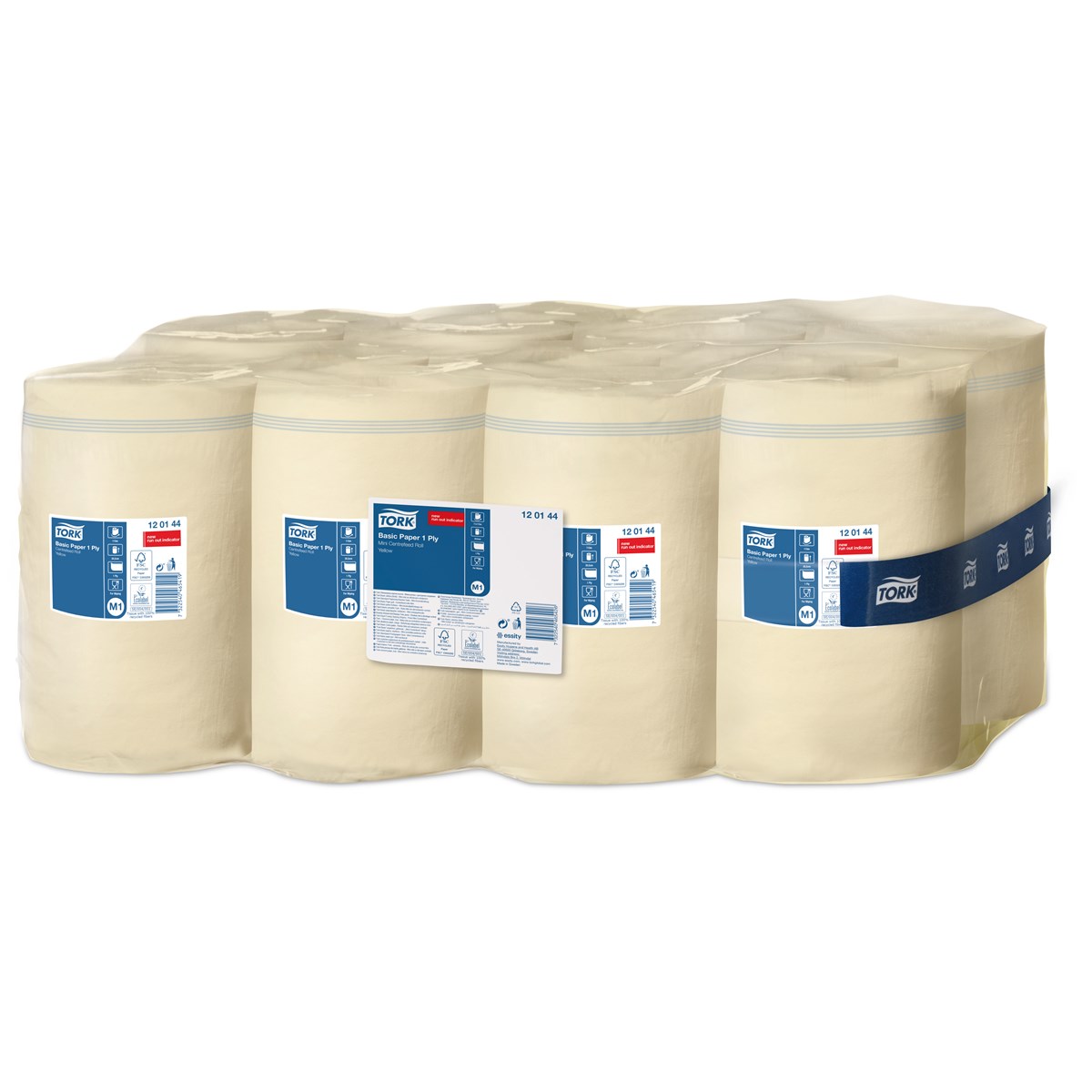 Centrummatat, gult papper. Passar perfekt för lättare avtorkning och handavtorkning. Har slutindikator – När det är 4 m papper kvar, syns blå linjer som talar om att det är dags att byta rulle. 1-lag. Passar till Tork hållare Mini M1. 115 m, bredd 20,5 cm, 0,6 kg/rulle. 11 rl/förp.