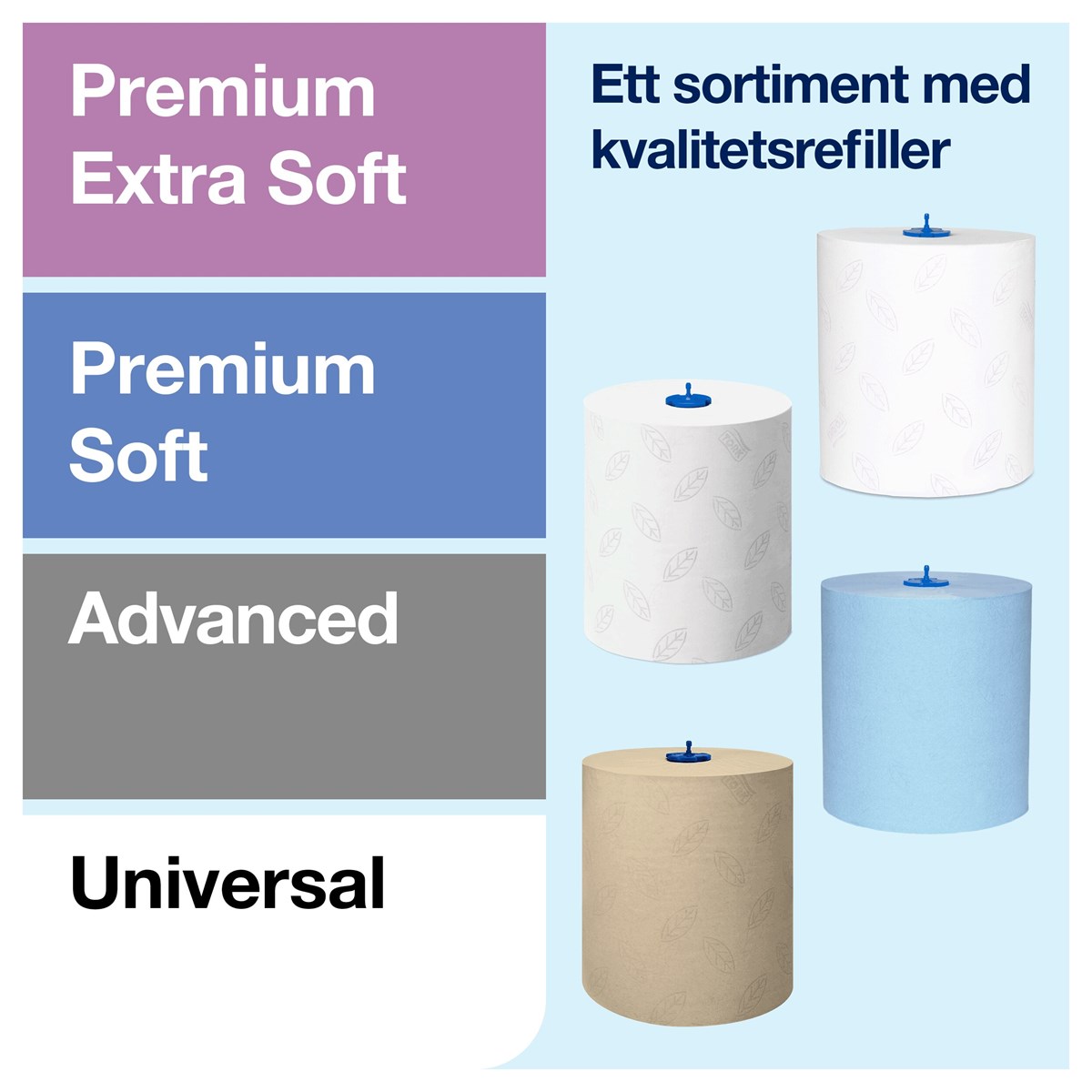 En handduk åt gången; minskar förbrukningen Beröringsfri utmatning Hög kapacitet - Enkelt att se när rullen bör bytas Idealisk för välbesökta toalettutrymmen