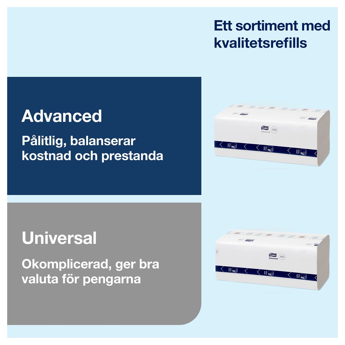 Utformad för högtrafikerade toalettutrymmen. Rymmer 2100 handdukar. Snabb utmatning och enkel att fylla på. Refillindikator visar när det finns en halv bunt kvar (ca 200 handdukar). Mått: (H x B x D) 73 x 37 x 10 cm.