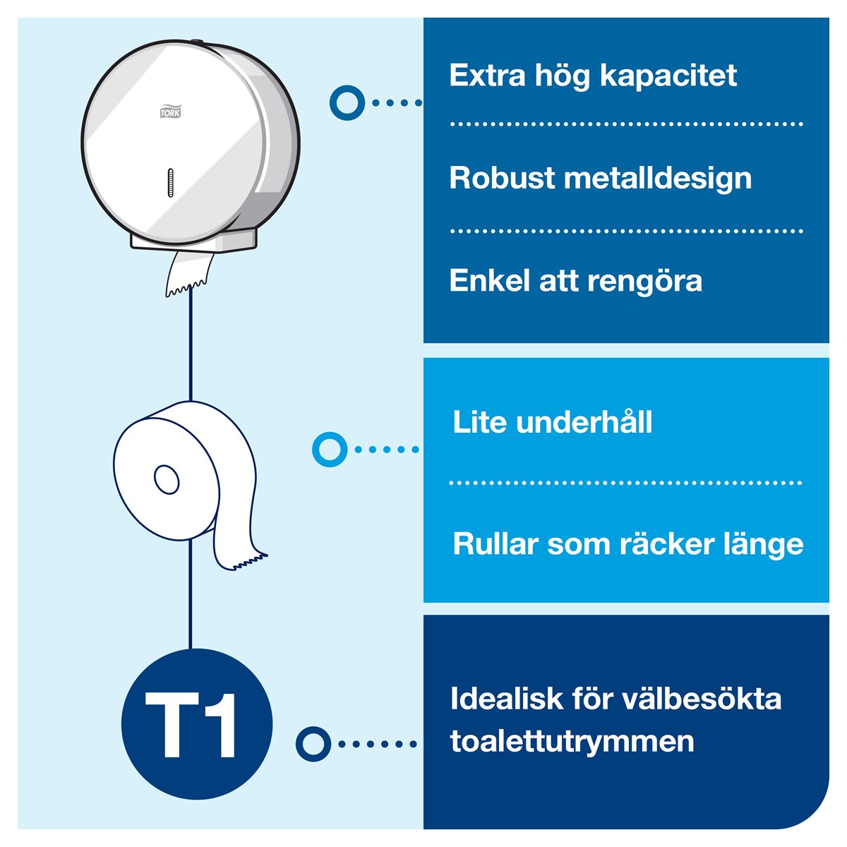 Förhindra stölder av toalettrullar i utmanande miljöer Minska underhållstiden tack vare sin höga kapacitet