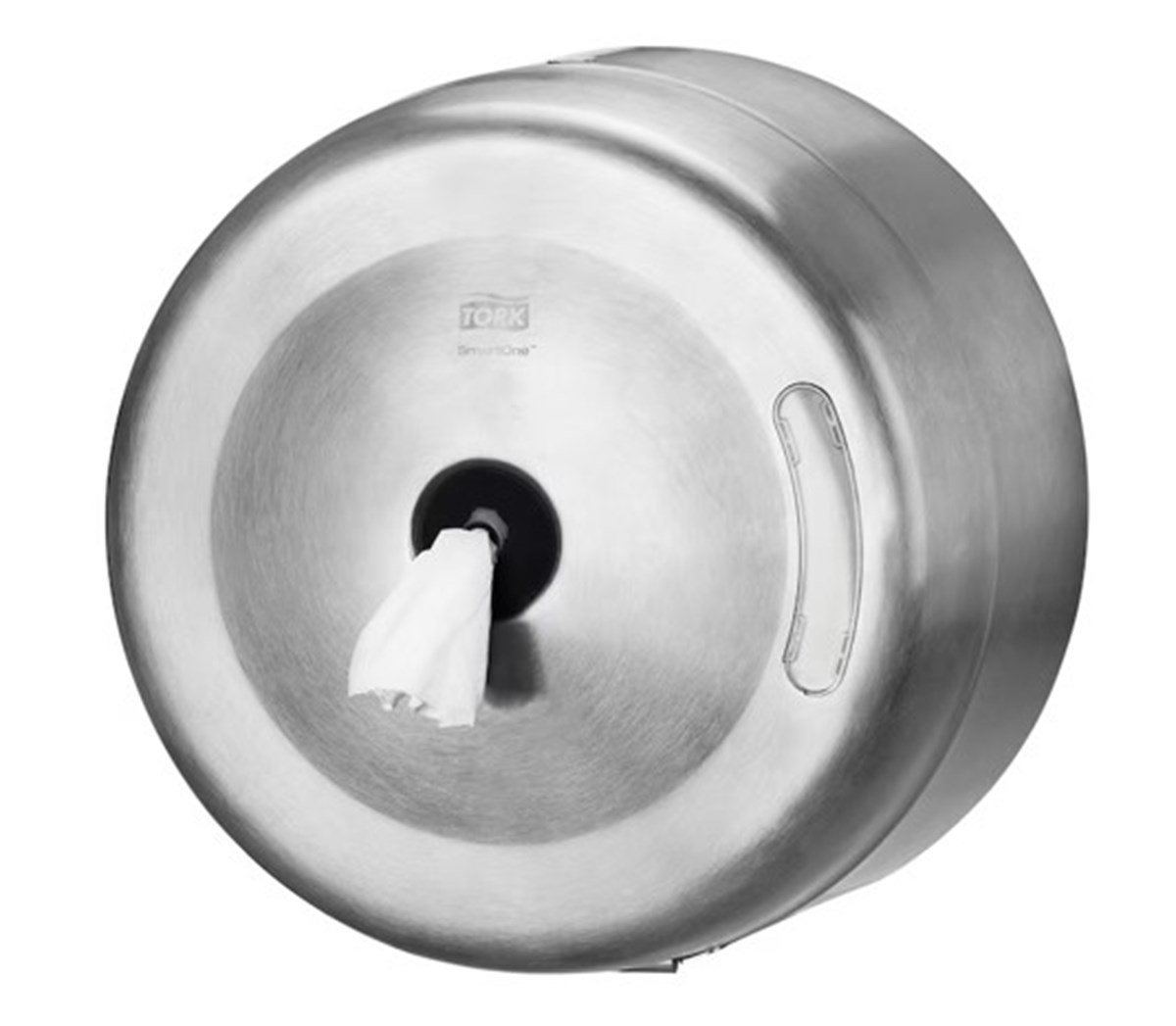 Tork SmartOne® Dispenser Toalettpapper är en effektiv och mycket robust dispenser av rostfritt stål som är lämplig för krävande toalettutrymmen med hög besöksfrekvens. Utmatningen av ett ark i taget hjälper till att minska förbrukningen med upp till 40 % jämfört med vanliga dispensrar för jumborullar, vilket innebär fler besök per rulle.