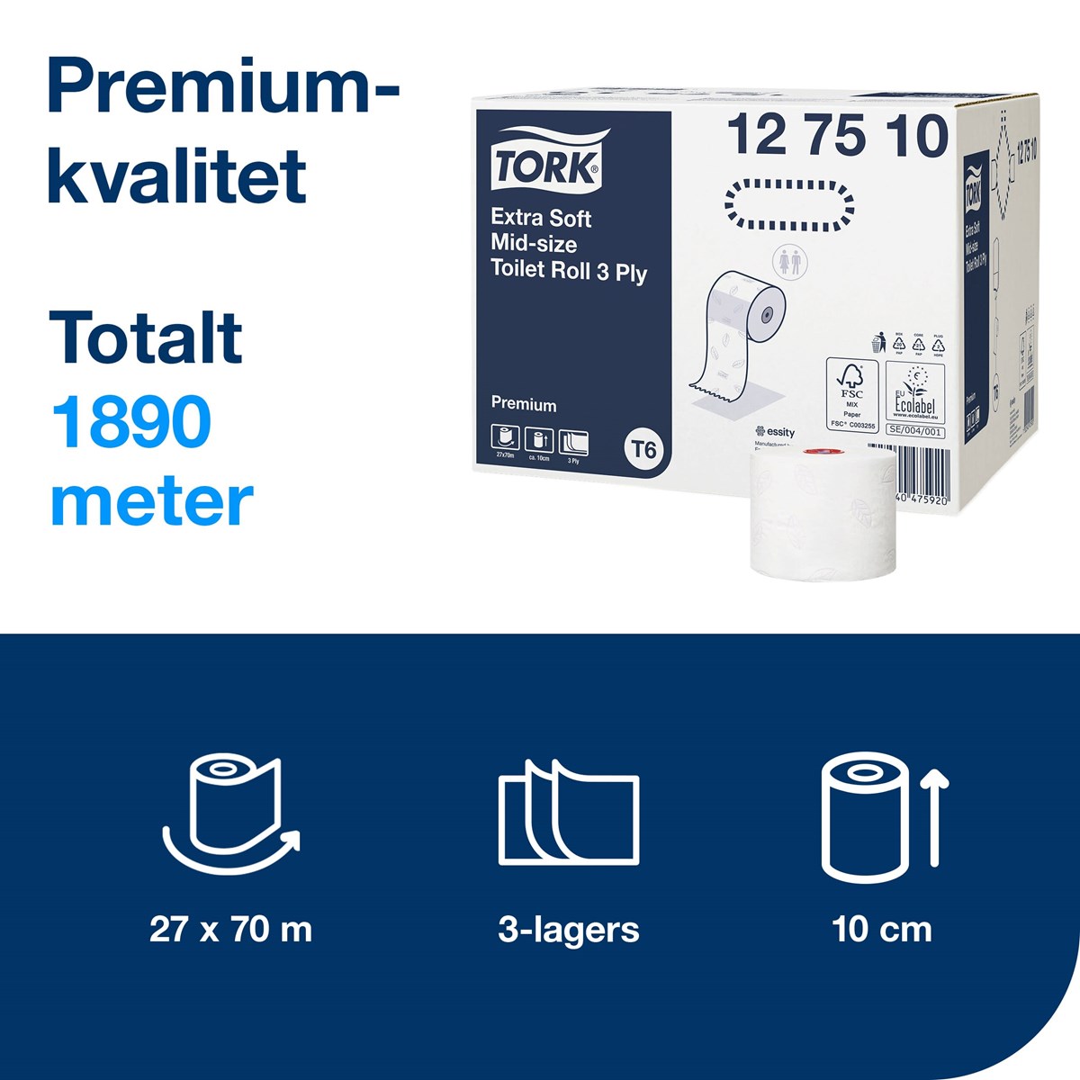 Toalettpapper Tork T6 Mid-size Extra Mjukt 27/fp