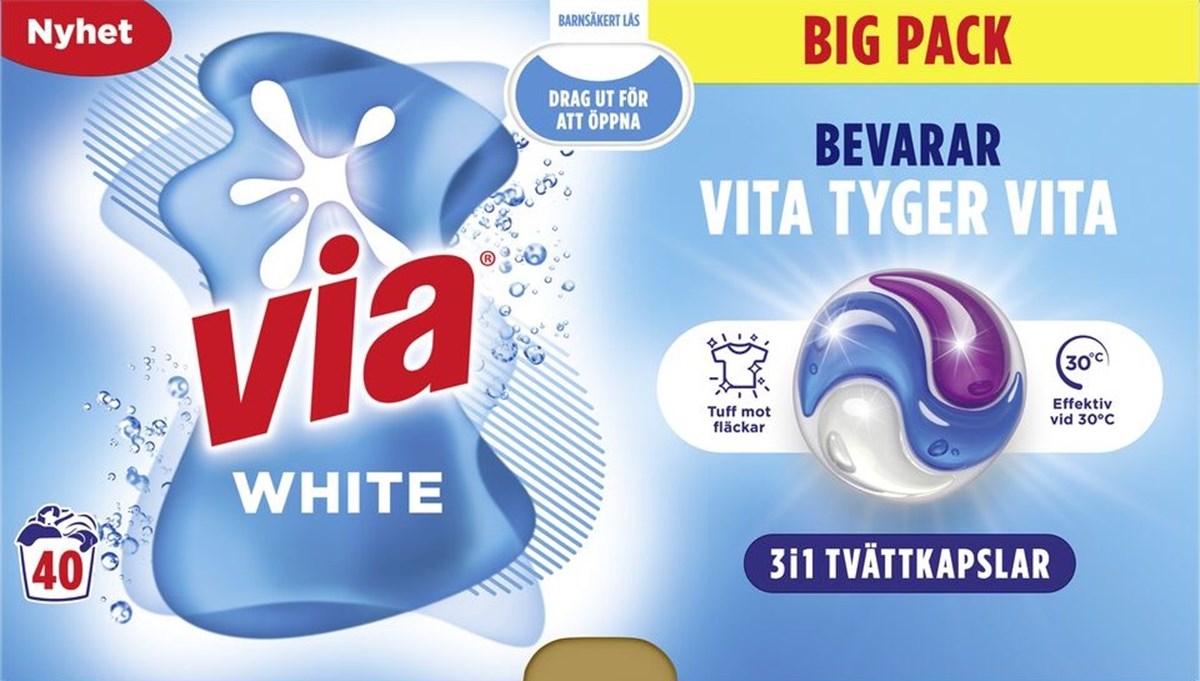 Via tvättkapslar erbjuder en färdigdoserad lösning för skinande ren tvätt. Med en kapsel per tvättmaskin säkerställer du rätt mängd koncentrat varje gång. Det enkla systemet gör att du undviker spill och fläckar som annars kan uppstå vid för mycket tvättmedel.